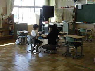1年生は,国語の学習で,それぞれが質問をしたい職員にインタビューをしています。どの児童もとても上手に話せています。