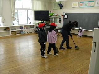 今日は,放送で2月の全校朝会を行いました。みんな真剣に,校歌や教頭先生の話等を聞きました。寒い中ですが,そうじも頑張っています。