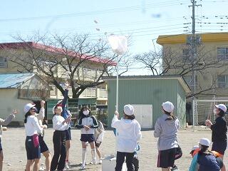 今日は,風も強く寒い一日になりました。1年生は,生活科の学習で作った凧をあげて,楽しんでいました。