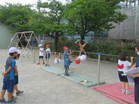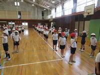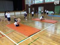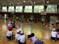 今日の我孫子市も昼過ぎには、34℃を過ぎて猛暑日に届きそうな感じでした。子どもたちは、水筒持参で熱中症対策をしながら体育館でゴムの力の実験を行っていました。