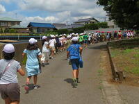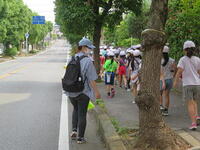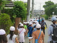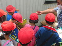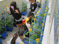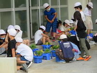 最後にビニルハウスで栽培されている野菜を見せていただきました。ビニルハウスの中には、キュウリやナス、枝豆、トウモロコシなどが栽培されていました。暑いビニルハウスでしたが、子どもたちは奥の方まで入って野菜の育っている様子を観察していました。最後に農家の方々に質問をして、充実した農家見学を終えました。今の農業は、最新の技術を使っていることや色々な工夫がされていることが分かりました。