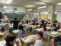 6月27日、今日の三小タイムでは読み聞かせの「ひょうたんから本゜」がひまわり5組で行われました。5組から7組の子どもたちが集まり、一生懸命にお話を聞いていました。ボランティアの方々には、1人1冊ずつ2冊の本を読んでいただきました。