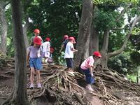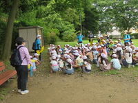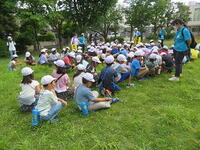 ジャガイモ掘りが始まりました。サツマイモとは違って、地下茎という茎が膨らんで芋になります。子どもたちは一生懸命に茎の下を掘っていきます。ジャガイモが1つ見つかるたびに「見つかった」「あった」の声が飛び交いました。