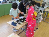 各教室にお祭りの音楽が流されていて、雰囲気もバッチリ。子どもたちも浴衣や甚平を羽織りながら夏まつりを盛り上げてくれていました。準備をしてくださったお家の方々、ありがとうございました。