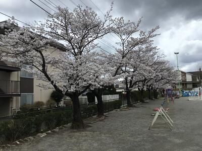 学校では、入学式に向けて準備を進めています。校庭の桜は、まるで新一年生の入学を心待ちにしているかのように、満開に咲き誇っています。下校時には、子供たちのにぎやかな声が校庭に響き、とても活気があります。