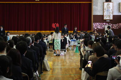 とても素敵だったことは、子供たちが笑顔だったことです。そして、保護者の皆さんの子供たちを見守る眼差しも温かく、やわらかい雰囲気の中、式を実施することができました。子供たちは校長先生の話や来賓の方の話をしっかりと聞き、担任の先生の呼名に元気よく返事をし、生き生きと参加することができました。