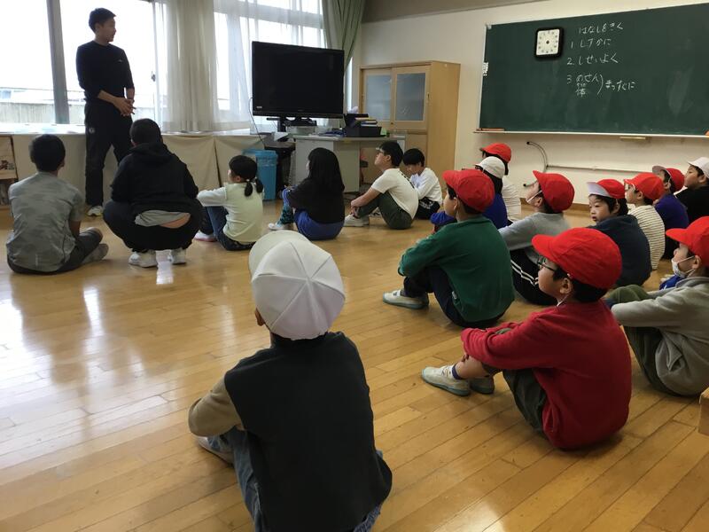 体育の授業では、近隣のスポーツ施設から指導員の方が来てくれて、子供たちの活動をサポートしてくれることとなり、今日が初めての支援の日でした。今日は、1年生の握力測定のサポートと、2年生の体育のサポートをしてくれました。握力測定の際には、児童の傍らで声掛けをしてくれました。体育のサポートでは、担任が全体指示を出している間にラインを引いたりコーンを置いたり、そして、体調が気になる児童がいたら担任が対応をしている間に全体への指示を出したり、、。大活躍で、担任の先生も大助かりでした!