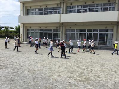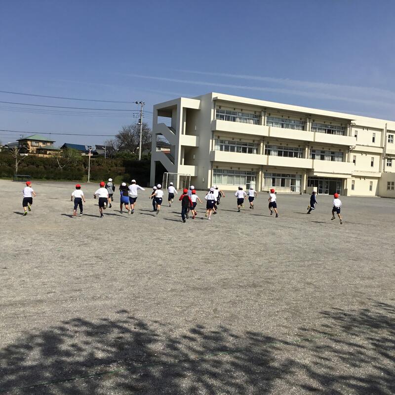 体育館でも、高学年の子供たちが鬼ごっこをして、走り回っていました。皆、とても楽しそうで、カメラを向けるとピースをしてくれる子もいました。駐車場付近では、理科の学習で雲の様子を観察をしている子がいました。カメラを向けると、「今日は天気がいいから雲が全然ないなあ、、。でも、うっすらと見える雲があるから、それを観察しよう。」と学びの様子を教えてくれました。
