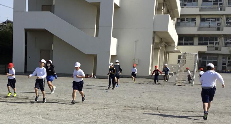 休み時間になると、子供たちが次々に校庭に出てきて楽しそうに遊んでいました。それだけではなく、先生たちも外にでてきて、汗びっしょりで子供たちと遊んでいました。