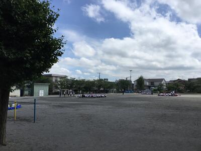 校庭に目を向けてみると、子供たちが体育の学習をしていました。学年よっては、鉄棒をしたり短距離走を行ったり、様々な活動に取り組んでいました。子供たちの生き生きとした学びを作っているのは、担任の先生をはじめとした先生方です。担任の先生の指示があるから、子供たちはしっかり整列して話を聞いたり、用具を運んだり並べたりと目的をもって活動することができます。