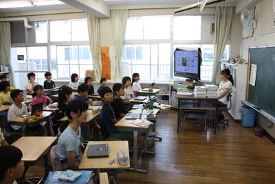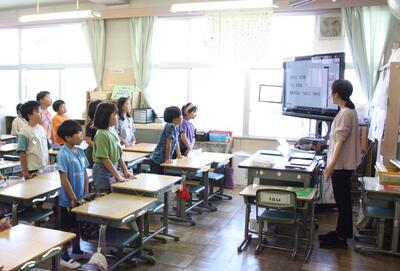 自慢の三小の先生たちの紹介を兼ねて、夏休み終盤の学校の様子を紹介しました。