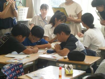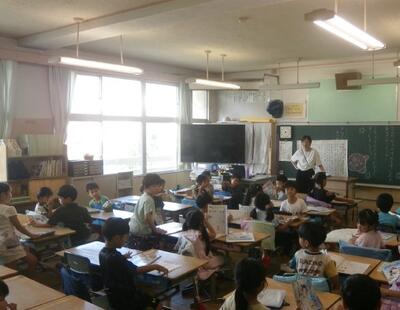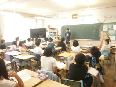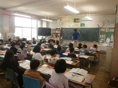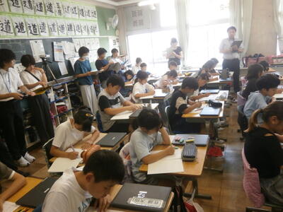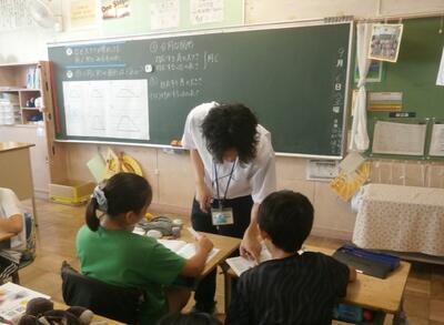 近隣の大学からボランティアで学級の支援に入ってくれている方もいます。この方も、担任のサポートをしたり、子供たちの学習の支援を行ったりと大活躍で、頼りになる存在です。また、未来の先生を目指す学生たちが、三小で実践を通して学びを得ることも、うれしいことです。