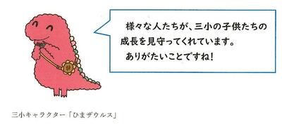 学校は、何を行うにも、「協力」が不可欠です。そして、協力すると自然と「感謝」の気持ちが生まれます。そして、それらは、全て三小の子供たちの健やかな成長につながっていきます。三小では、児童、職員、保護者、地域、関係機関等、学校を支える全ての人たちが協力しています。そのような素敵な三小は、今日も絶好調です!