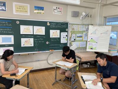 校内授業研究会を実施しました。今年度初めての授業研究会で、教科は算数です。そして、今回、授業を展開した学年は5,6年生です。