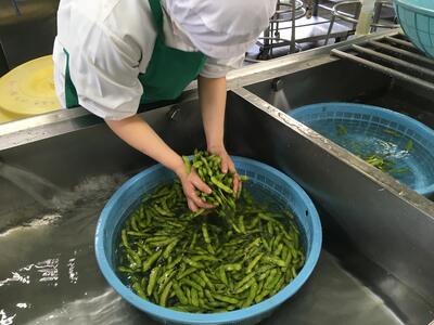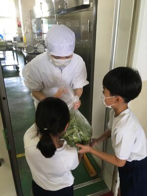 みんなが一生懸命向いたそら豆は、給食室に運ばれ、その日の給食として全校児童にふるまわれました!1年生の皆さん、おいしい給食をありがとう!