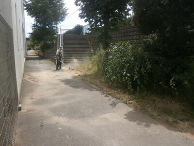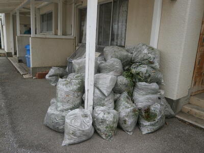 そして、その後は、除草作業を実施し、多くの保護者の皆さんにご参加いただきました。運動発表会を間近に控え、校庭では子供たちが発表の練習をしていましたので、その様子をご覧いただきながら、校庭等の除草作業をしていただきました。作業が終わると、雑草が入った袋が山のように集まりました。これで、運動発表会でも、子供たちが精一杯の力を発揮することができます。
