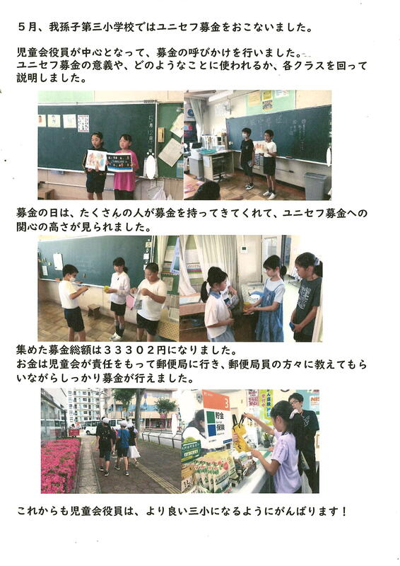 最後に、今回の募金活動にあたって、ご理解とご協力をいただけました保護者の皆さんに感謝申し上げます。ありがとうございました!
