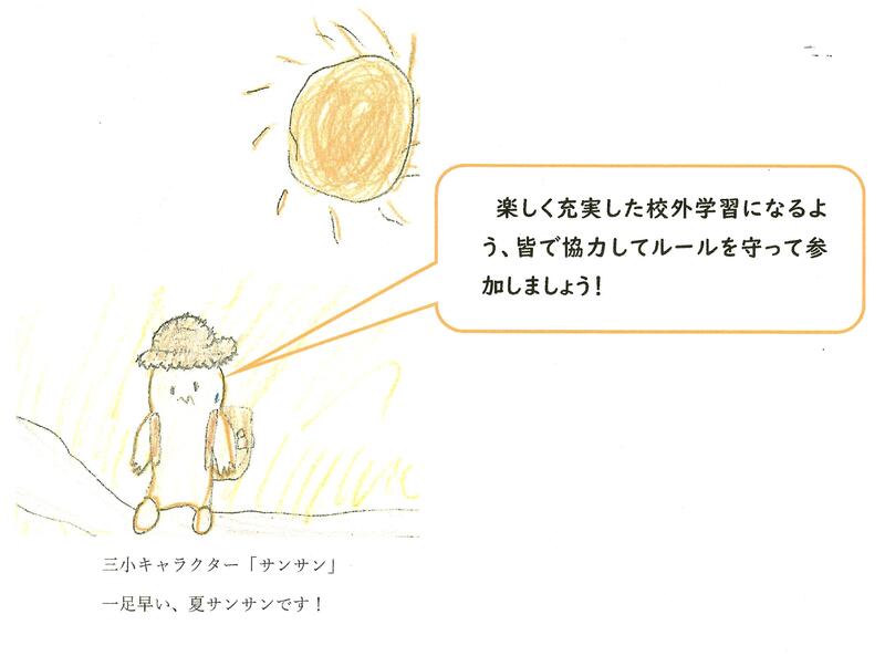 三小は、校舎が3つあるとても大きな学校です。そのため、1年生は、きっとまだどこにどのような教室があるのか、その教室は何に使うのか、等もわからないことが多いと思います。今回は、学校全体を巡って探検をしますので、1年生にとっては少し心配や不安があることと思います。