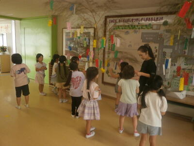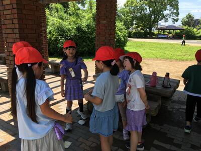でも、2年生のお兄さん、お姉さんがペアになって手を引いて学校を案内してくれたので、1年生の皆さんは安心して学校探検ができました。1年生に優しく声をかけている2年生の姿は、とても頼もしく昨年度からの大きな成長を感じて心強く感じました。また、2年生が「今は〇時〇分だから、終わりの時刻まで、あと〇分間だよ」と言っている姿を見て、1年間の成長ってすごいなあ、と思いました。