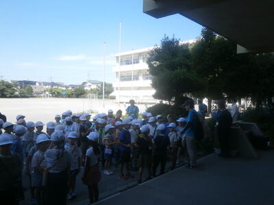 子供たちは、とても真剣に訓練に臨み、整列時も整列後も、とても静かに落ち着いて行動することができました。校長先生からは、「子供たちの訓練に臨む姿勢が、まずは素晴らしい」という話と、「災害はいつ起こるかわからないので、いつでも自分の命を自分で守れるようにしましょう。そのために訓練の積み重ねが大切です。」という話がありました。