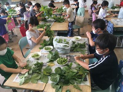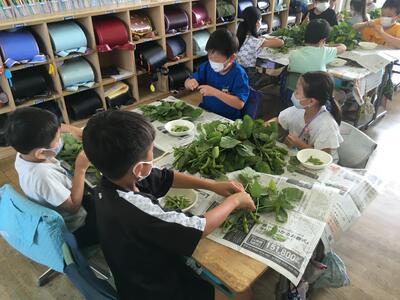 スーパーで売られているそら豆は、食べやすいように処理されたものです。でも、そら豆が畑で育ち、収穫し、皆が食べられるように処理をして売り出すまでには、とてもたくさんの農家の方々やお店の方たちのご苦労や工夫があります。子供たちは、この学習を通して実際の作業を通して、そのような食を提供してくれている人たちへの感謝の気持ちが育まれたことと思います。