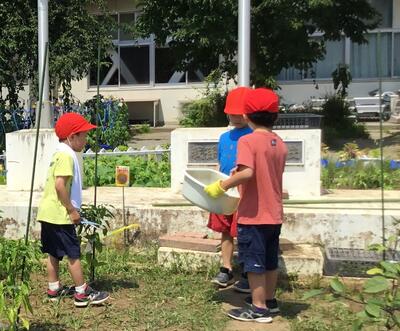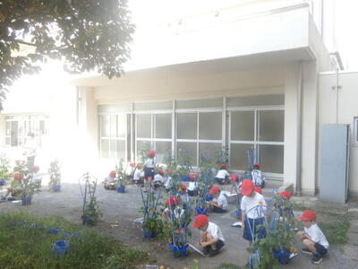 今日は、校庭で1年生が生活科の学習を実施していました。鉢に土を入れて、朝顔の種をまき、水をやる、という学習内容です。文章にするとたったの一行ですが、そのことを1年生の学級で全員が1時間の授業の中で行うことは、実はとても難しいことです。
