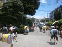 6年生が、元気に三小を出発しました。6年間でそれぞれが培った力を十分に発揮して、仲間との団結をさらに深め、最高の思い出をつくってほしいと願っています。