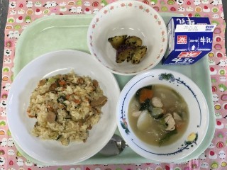 10月30日の給食 公開日 2025/10/30 更新日 2025/10/30 給食 (今日の献立)牛乳 焼肉チャーハン トック入りスープ 大学芋 今日は、人気メニューの大学芋です。千葉県産のさつまいもを揚げて、甘辛いたれを絡めました。