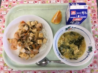11月21日の給食 公開日 2025/11/21 更新日 2025/11/21 給食 (今日の献立)牛乳 えびと豆腐のチリ煮丼 中華風コーンスープ はやか 今日は、我孫子産野菜の日です。えびと豆腐のチリ煮丼に、我孫子産のねぎを使用しました。我孫子産の新鮮な野菜を、全校で味わいました。