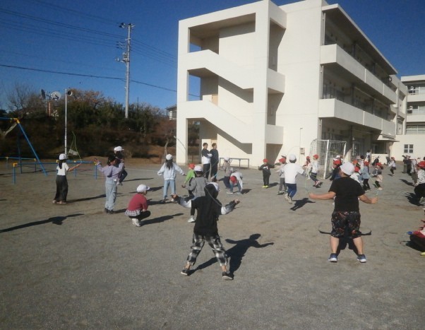 今日は、昼休みの時間に体育委員会の子供たちが、主体となってCDやアンプを用意して、リズム縄跳びの音楽を流しました。そのリズムに乗って、様々な学年の子供たちが、思い思いに縄跳びを楽しんでいました!縄跳びは、縄跳び自体の技術向上ももちろんですが、外で元気に遊び体力をつけるためにも、とても効果的です。