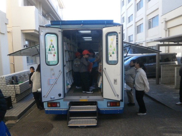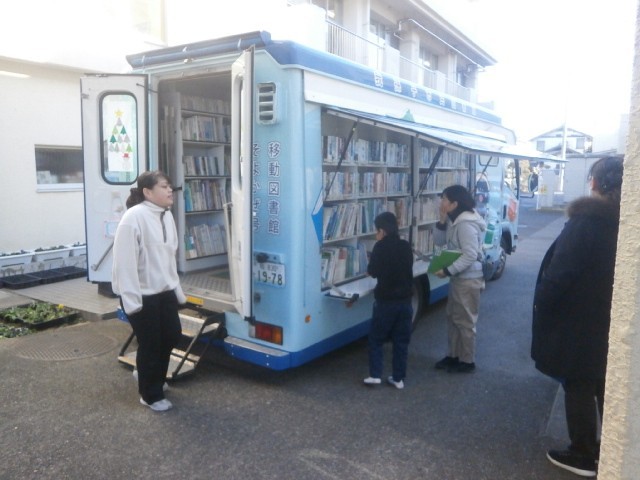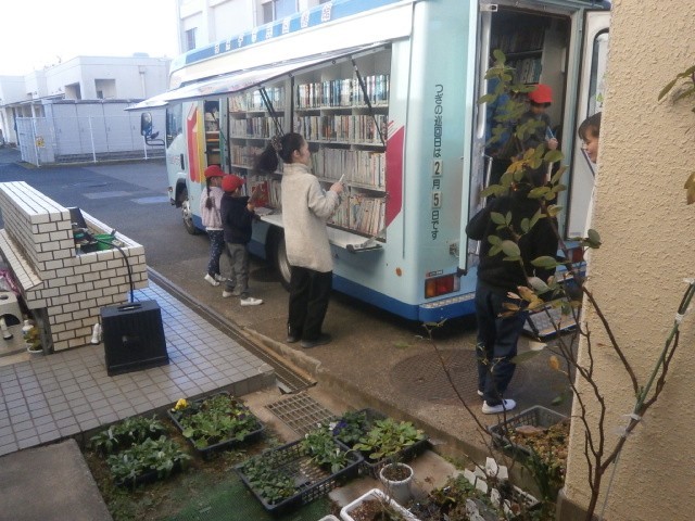 今日は、風が強く、外は凍えるような寒さでしたが、訪れた子供たちは楽しそうに本を選んでいました。また、担任の先生たちも一緒に訪れ、子供たちと一緒に本選びをしている様子でした。また、持ちきれないほのどたくさんの本を抱えて、そよかぜ号から降りてくる子もいました。