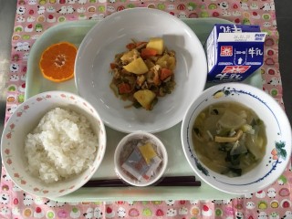 牛乳 ごはん 肉じゃが 納豆 白菜とえのきのみそ汁 ぽんかん