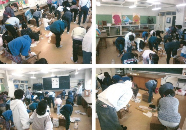 教室に入ってみると、子供たちが皆一生懸命、下を向いてのこぎりを動かしていました。皆、集中して木を切るために足や手で木材をおさえて、のこぎりを持った手を懸命に動かしていました。そのような子供たちの様子をそっと見守りつつ、困っている子がいればそっと手を差し伸べてくれる保護者ボランティアの皆さん、いつもありがとうございます!