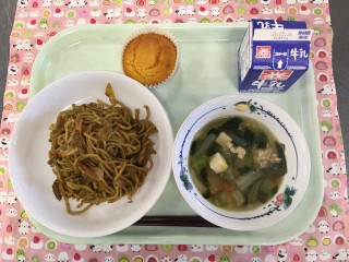 3月9日の給食 公開日 2026/03/09 更新日 2026/03/09 給食 (今日の献立)牛乳 五目ソース焼きそば 豆腐のぴりからスープ 米粉のキャロットケーキ 今日は、手作りの米粉キャロットケーキです。すりおろしたにんじんがたっぷり入っていますが、はちみつの甘さやほんのりとしたシナモンの香りで、にんじんが苦手でもおいしく食べられるケーキです。