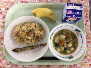 3月12日の給食 公開日 2026/03/12 更新日 2026/03/12 給食 (今日の献立)牛乳 焼き鳥ごはん 韓国風焼きししゃも お講汁 バナナ 今日は、ししゃもに酒、にんにく、豆板醤、しょうゆ、コチュジャンで下味をつけて、オーブンで焼いた「韓国風焼きししゃも」です。ししゃもは、頭から骨ごと食べられる魚なので、骨や歯を強くするカルシウムをたっぷり摂ることができます。