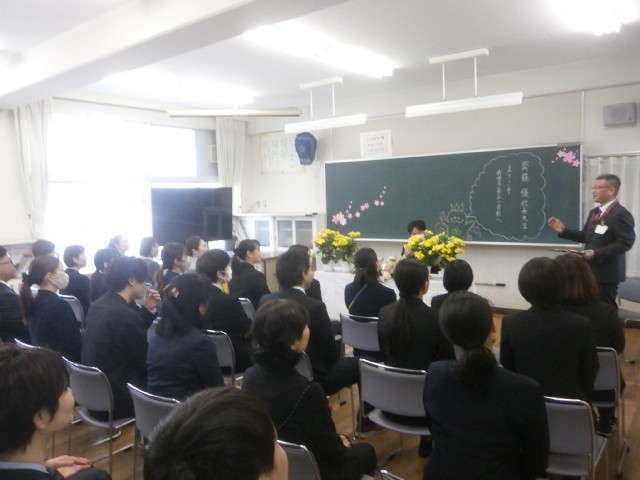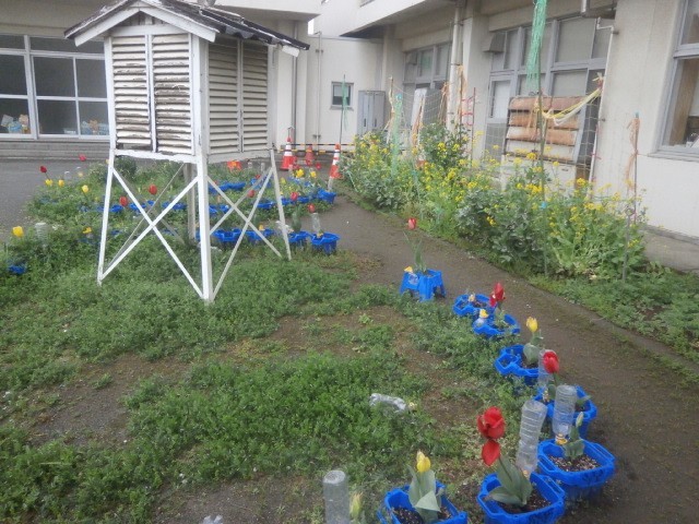 今日は、子供たちは未だ春休み中ですが、先生たちは、新しい先生方をお迎えして新年度の準備を進めています。天気はあいにくでしたが、桜も満開状態で、チューリップや菜の花もきれいに咲いて、新しい先生たちをお迎えしているようです。