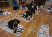 真剣に字に向き合う時間、書き初め会(4,5年生)