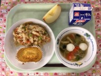(今日の献立)牛乳 中華おこわ 韓国風焼きししゃも ごまキムチ汁 はるか 今日の...