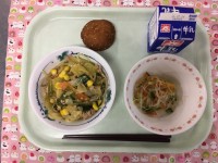 (今日の献立)牛乳 コスタリカライス カリカリポテトサラダ でこぽん カリカリポ...