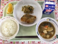 【今日の給食】ごはん さわらのみそマヨネーズやき 野菜のごまあえ けんちん汁 牛...