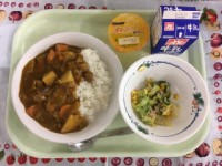 (今日の献立)牛乳 チキンカツカレーライス 大根ツナサラダ せとか 今日は、6年...