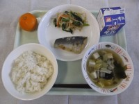 【牛乳・ごはん・秋サワラの西京焼き・もやしと小松菜の和え物・豆腐と白菜のすま...