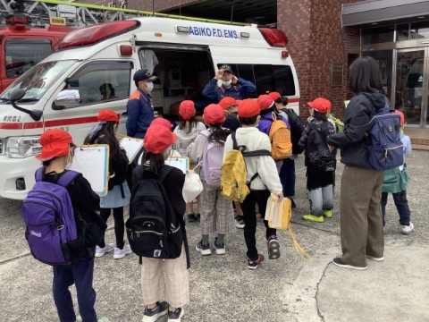 18日、3年生児童が我孫子市西部消防署へ社会科見学に出かけました。