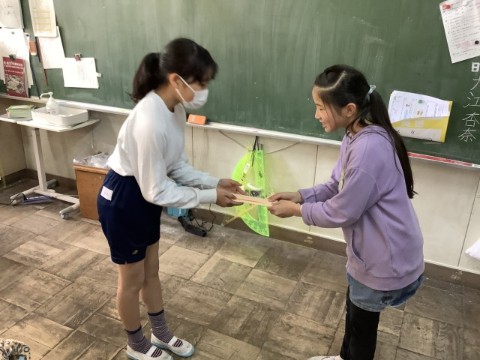 本日、送る会に向けて5年生が6年生に招待状を届けました。