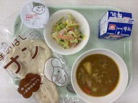 牛乳、ナン、チキンカレー、コールスローサラダ、ヨーグルト 【学校給食週間 インド...