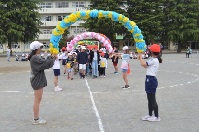 1年生は6年生がエスコートして花のアーチから入場。入場後一人一人自己紹介と自分の好きなことを全校児童の前で発表しました。みんな緊張しながらも堂々と発表することができました。素晴らしかったです。1年生の好きなものの発表では何人かのお友達が「6年生と遊ぶこと」を挙げていました。いつも1年生のお世話をしてくれている6年生の優しさが伝わっていることにとても嬉しくなりました。6年生いつもありがとうございます。自己紹介のあとはみんなでゲーム。児童会の皆さんの司会進行のもと「誕生月の歌」「猛獣狩りゲーム」と学年の枠を超えてみんなでゲームを楽しみました。みんな笑顔いっぱいでステキな「1年生を迎える会」になりました。