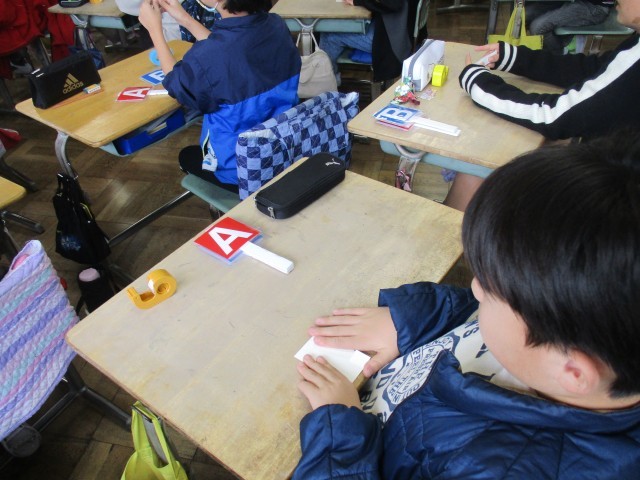 本日、防災センター出前授業が4年生の教室で行われました。前半は台風や地震、火災についてクイズを交えながら楽しく勉強しました。最後には紙で手作りホイッスルを作りました。マグニチュード、震度、台風情報の味方等々楽しく勉強しました。先生ありがとうございました。