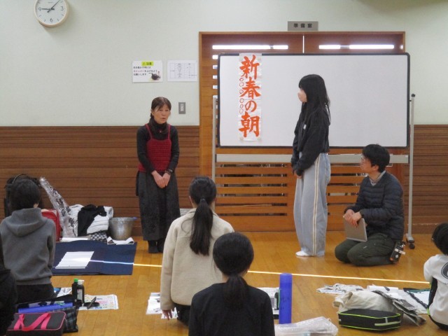 書道家の倉持先生も来ていただき、お手本を見ながら、5・6年生のみんな集中して書き初めに取り組んでいました。