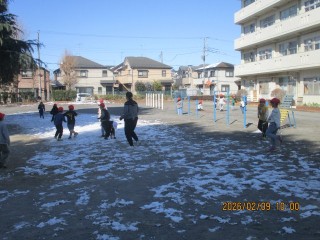 2月9日(月)土日に降った雪がまだ残っていますが、みんな元気に遊んでいます。