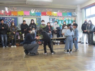 3月3日(火)今日の午後には、先日学級閉鎖のためできなかった1年2組(5時間目)と4年1組(6時間目)の学習参観が行われました。